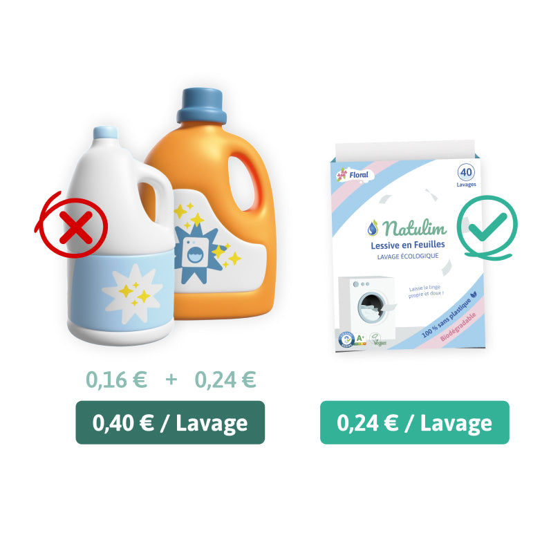 You don't have to sacrifice cleaning efficiency to wash more eco-friendly. With Natulim , you have the same power as with any major brand liquid or powder detergent. More than 1300 of our customers confirm this in our reviews, take a look!